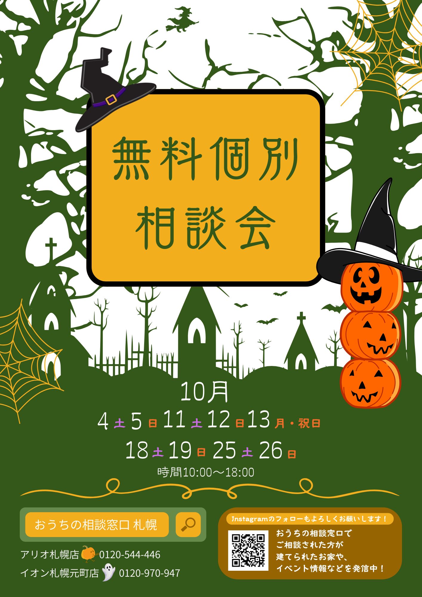 おうちの相談窓口アリオ札幌店・イオン札幌元町店では「秋の家づくり無料個別相談会」を開催します☆.。.:*